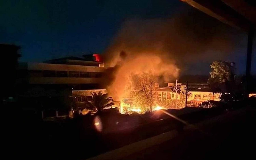 Vụ đánh bom xe xảy ra trước trụ sở cơ quan nhà nước thuộc huyện Panare, tỉnh Pattani rạng sáng ngày 24/10. (Ảnh: Abdullah Benjakat)