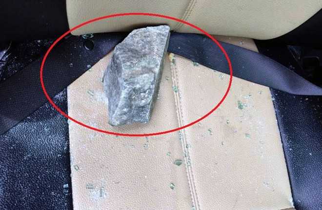 Hòn đá bằng bàn tay sắc cạnh đâm thủng kính, trúng người ngồi ghế phụ phía trước. Mọi người la hét, sợ hãi.
