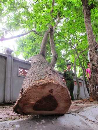 | Một cây sưa bị đốn hạ trên phố ở Hà Nội. (Ảnh: QT) |