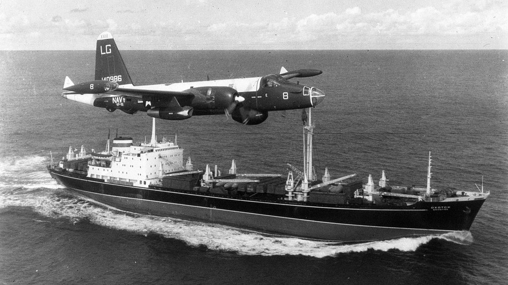 Máy bay P2V Neptune của Mỹ bay tuần tra phía trên tàu chở hàng của Liên Xô trong Khủng hoảng tên lửa Cuba. (Ảnh: GI)