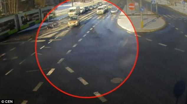 Vụ việc xảy ra ở thành phố Olsztyn, Ba Lan. Hình ảnh trong đoạn video của camera giám sát cho thấy, nạn nhân 24 tuổi chạy rất nhanh, băng qua đường mà không để tâm đến việc đèn dành cho người đi bộ đang màu đỏ.