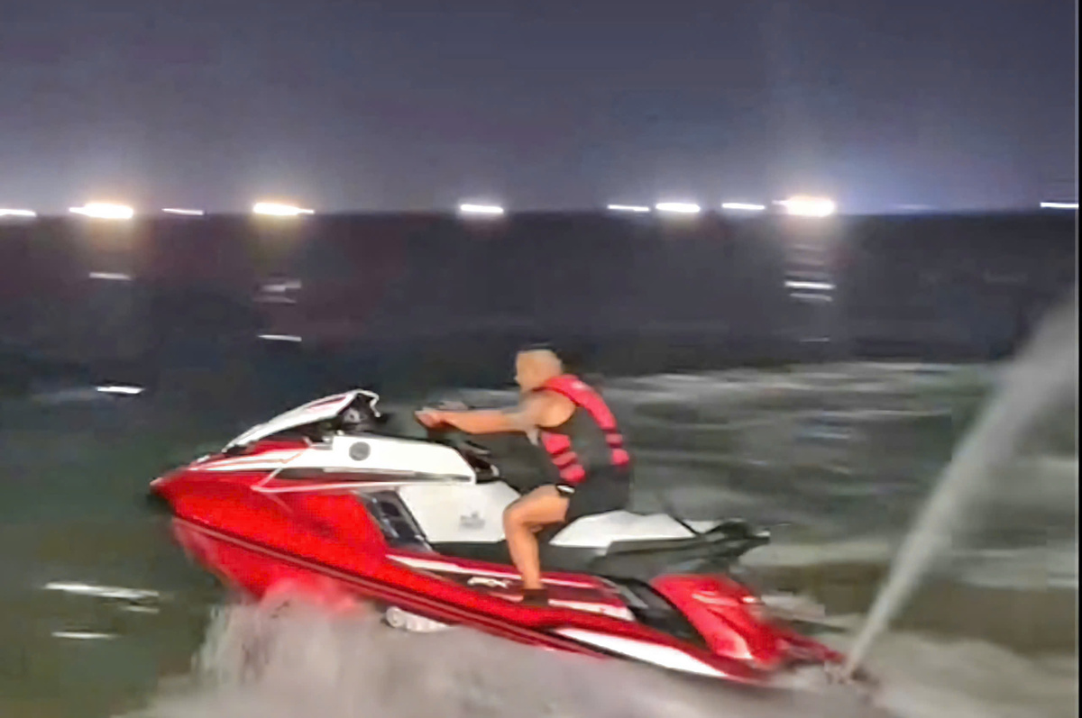 Hình ảnh cắt từ clip nam TikToker chạy mô tô nước ở bãi biển công cộng.