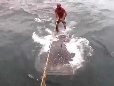 Liều lĩnh lướt sóng trên lưng cá mập voi