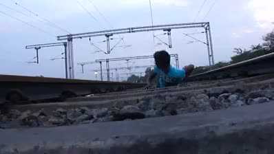 Liều lĩnh nằm dưới đường ray cho tàu hỏa chạy qua