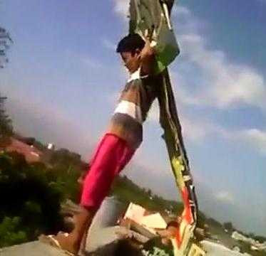 Cậu bé cầm chiếc diều tự chế và tin rằng mình có thể bay nhưng thực tế đã được chứng minh ngay sau đó.
