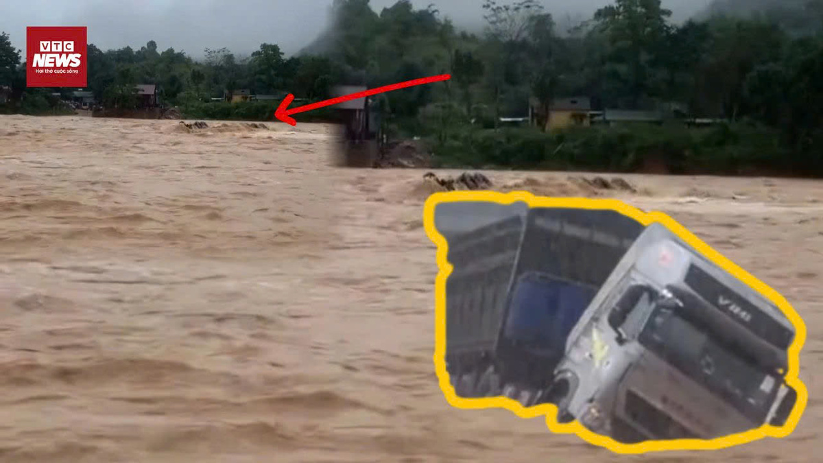 Tài xế xe đầu kéo tự ý mở rào chắn, vượt qua cầu tràn La Lay (Quảng Trị) đã bị dòng nước lũ chảy xiết cuốn trôi.