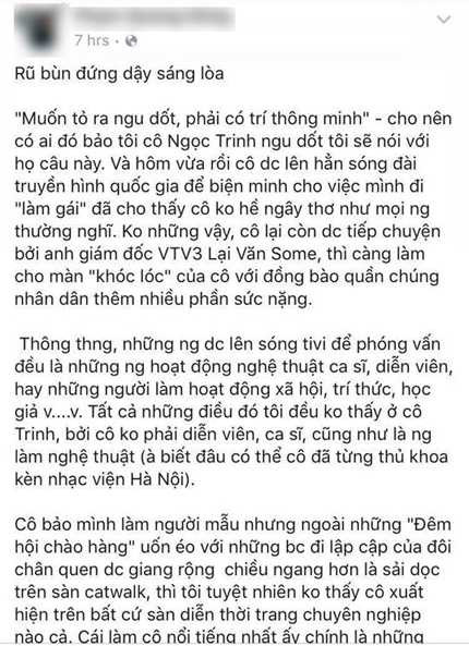 Bài viết khiến Ngọc Trinh bức xúc