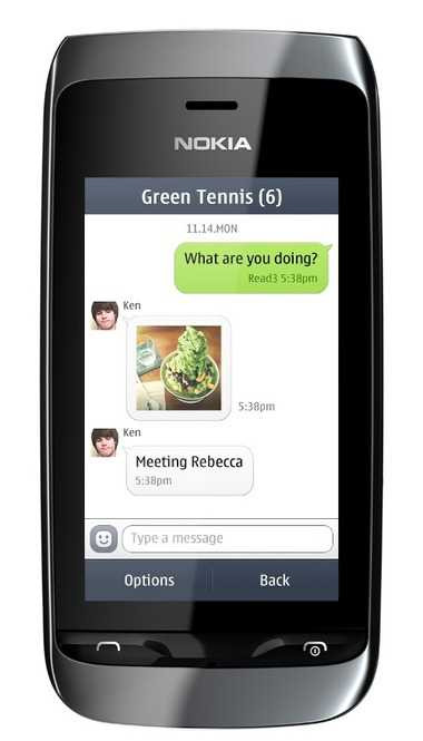Ứng dụng LINE cho thiết bị điện thoại Nokia Asha sẽ được khởi động với các tính năng thiết yếu: ▲ Trò chuyện 1:1 ▲ Trò chuyện nhóm ▲ Biểu tượng 4 sticker truyền thống (Moon, Cony, Brown và James).