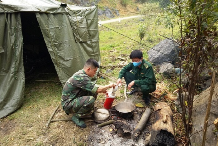 "Biên giới những ngày này đang là mùa khô nên nước từ các khe suối cũng khan hiếm. Để có được nước sinh hoạt, chúng tôi phải dùng máng tre dẫn nước rồi dùng bạt làm mó trữ. Nhiều hôm, anh em phải đi cả cây số lấy nước dự trữ. Có những buổi chiều, đàn trâu ngang qua đẫm lên mó nước của anh em, nhiều sinh hoạt phải chững lại đến đêm khuya”, anh Lực chia sẻ.