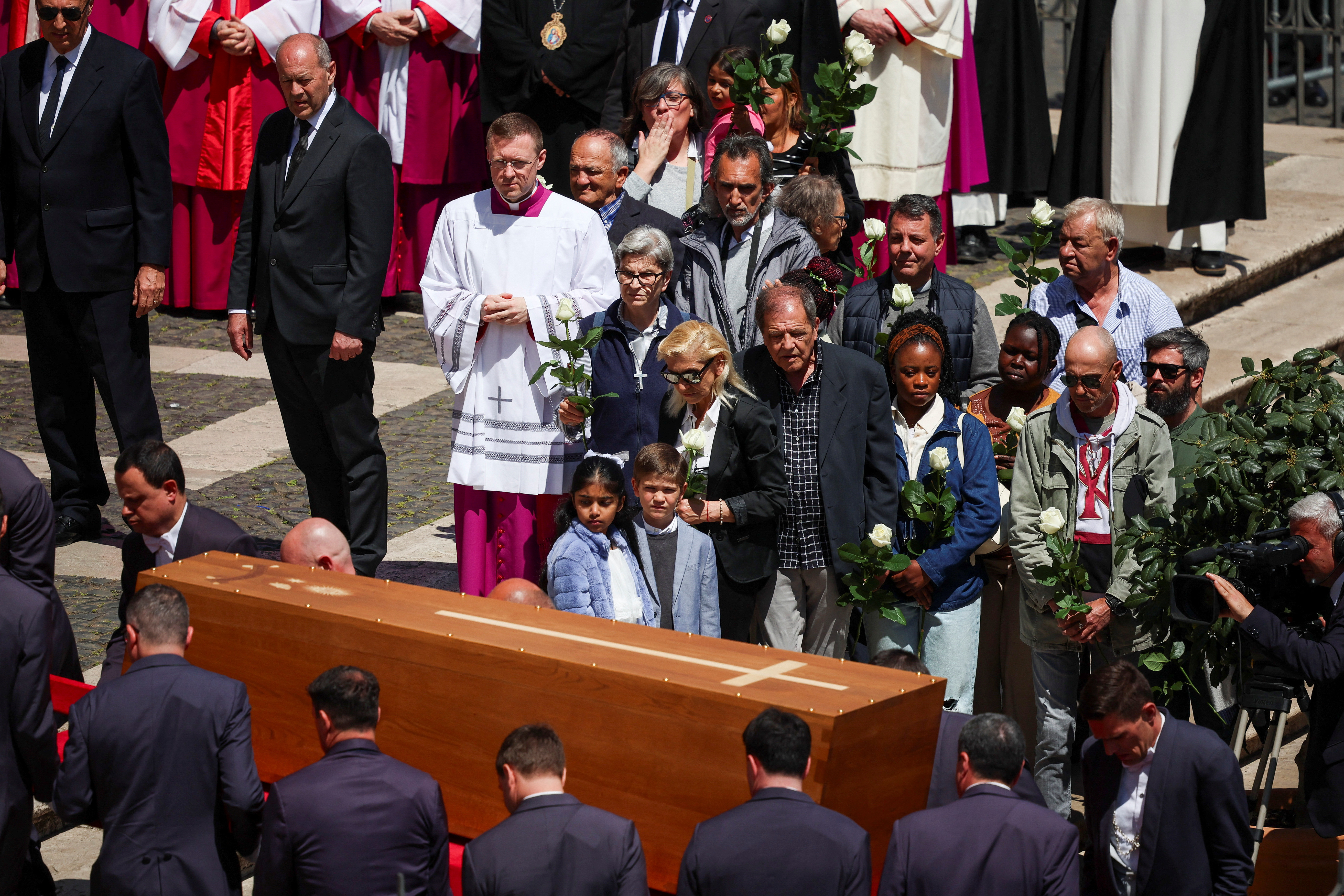 Sau thánh lễ tiễn biệt, linh cữu của Giáo hoàng Francis được đội khiêng linh cữu rước vào bên trong Vương cung thánh đường Thánh Peter lần cuối.