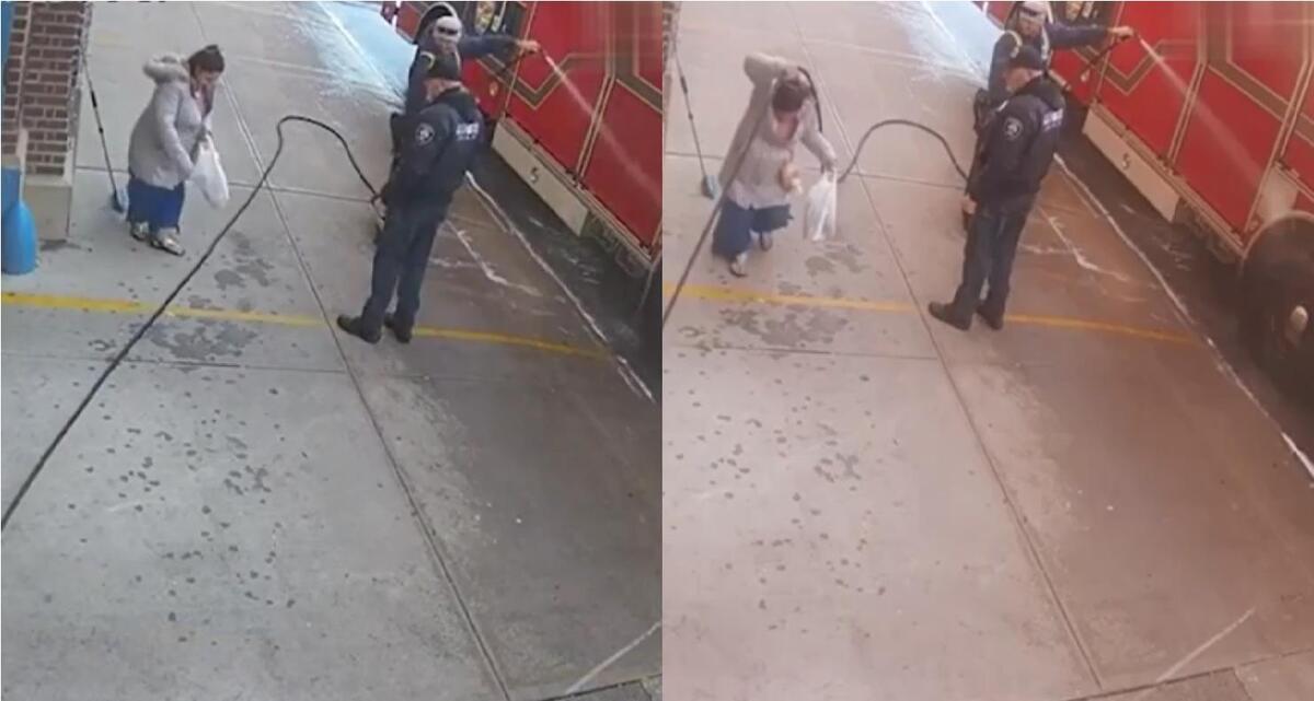 Lính cứu hỏa bật cười với pha xử lý 'cồng kềnh' của cô gái đi đường