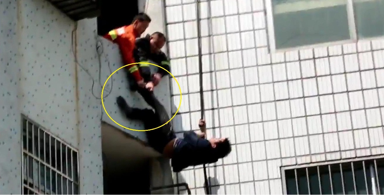 Sự việc xảy ra tại huyện Thông Thành, tỉnh Hồ Bắc, Trung Quốc. Người đàn ông được giải cứu và không hề hấn gì.
