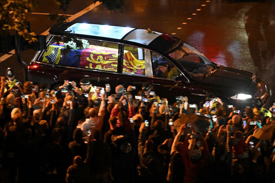Vào đêm 13/9 (theo giờ địa phương), xe tang chở linh cữu Nữ hoàng Elizabeth II di chuyển chậm rãi từ sân bay qua các con đường ở thủ đô London. Người dân xếp hàng dài dọc theo các tuyến đường, trong đó một số người ném hoa khi chiếc xe đi qua.