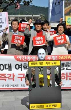 (VTC News) - Hôm nay, nhiều tổ chức đoàn thể tại Hàn Quốc đã biểu tình trước đại sứ quán Mỹ tại Hàn Quốc, phản đối việc binh sĩ quân đội Mỹ đóng tại Hàn Quốc cưỡng hiếp nữ sinh Hàn Quốc và yêu cầu Mỹ lập tức bắt giữ tội phạm.
