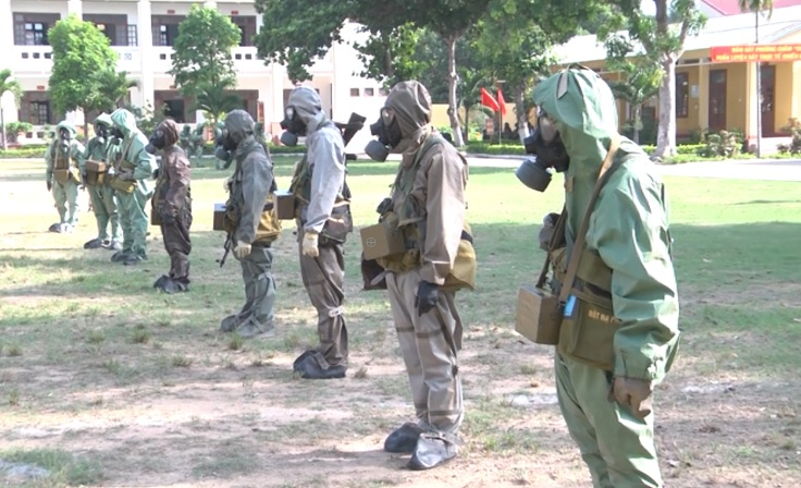 Lính phòng hóa huấn luyện trong nắng nóng 40 độ C