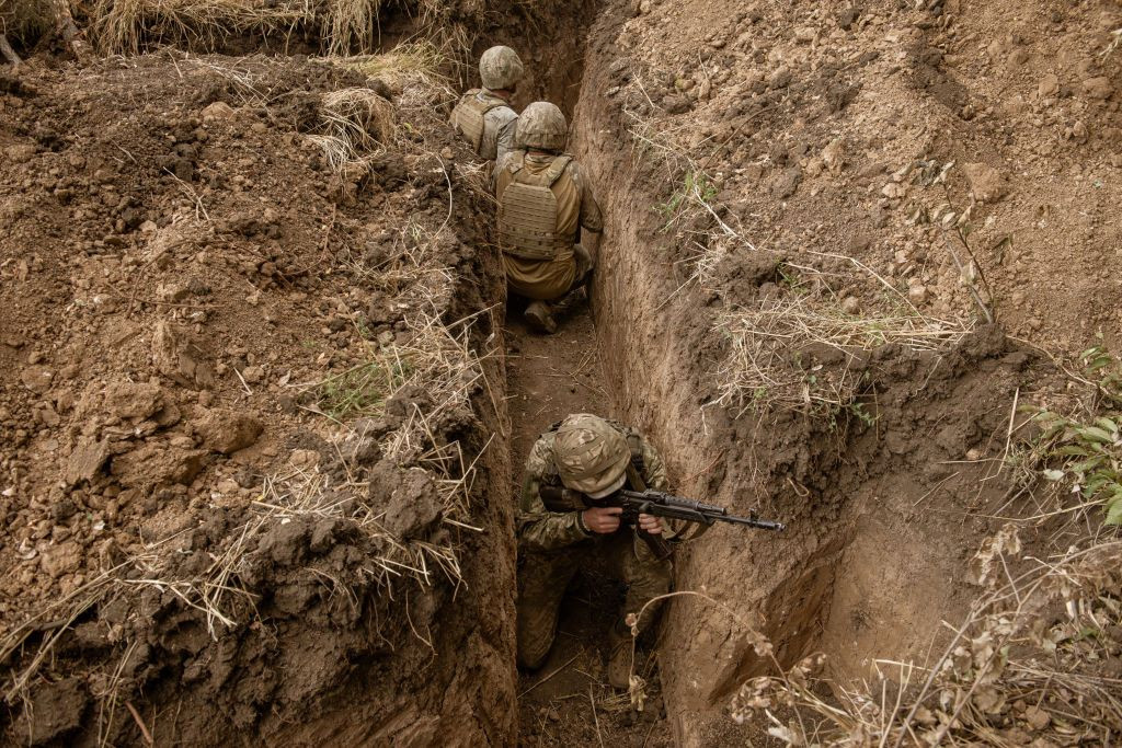 Binh sĩ Ukraine huấn luyện chiến đấu trong chiến hào.