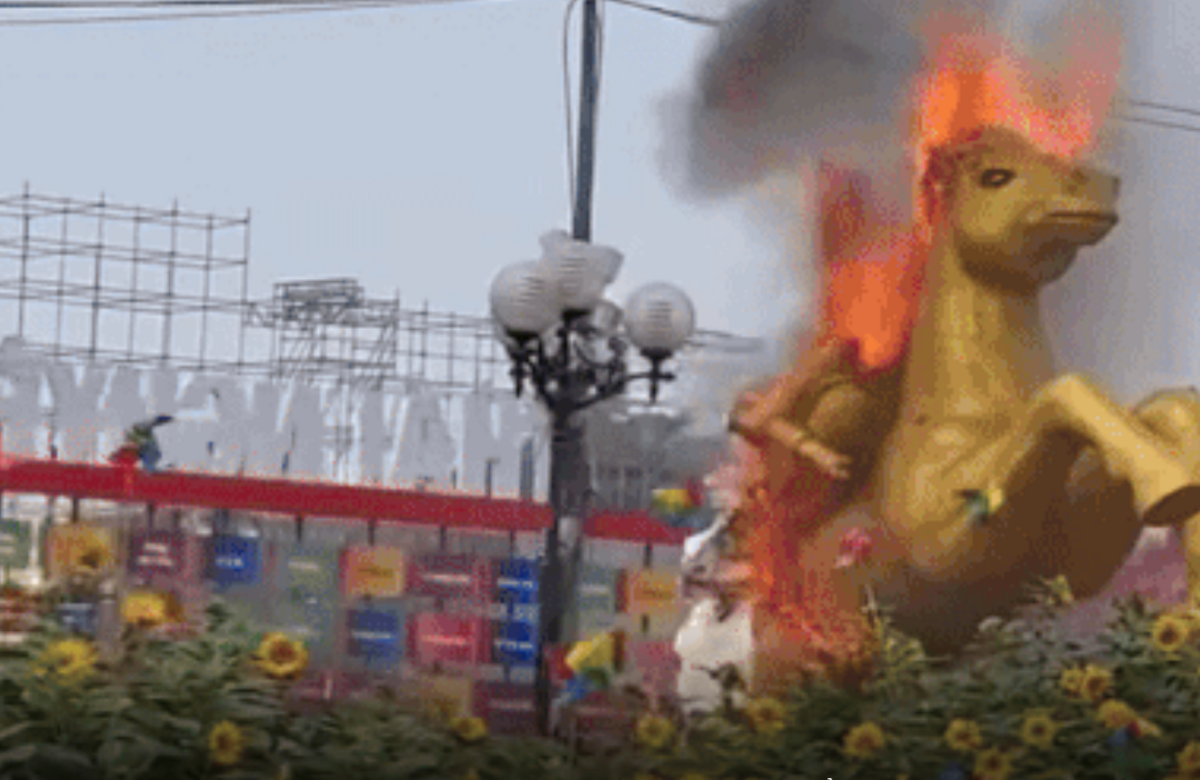 Hình ảnh linh vật ngựa bốc cháy nghi ngút ở Thái Nguyên. (Ảnh: Mạng xã hội)