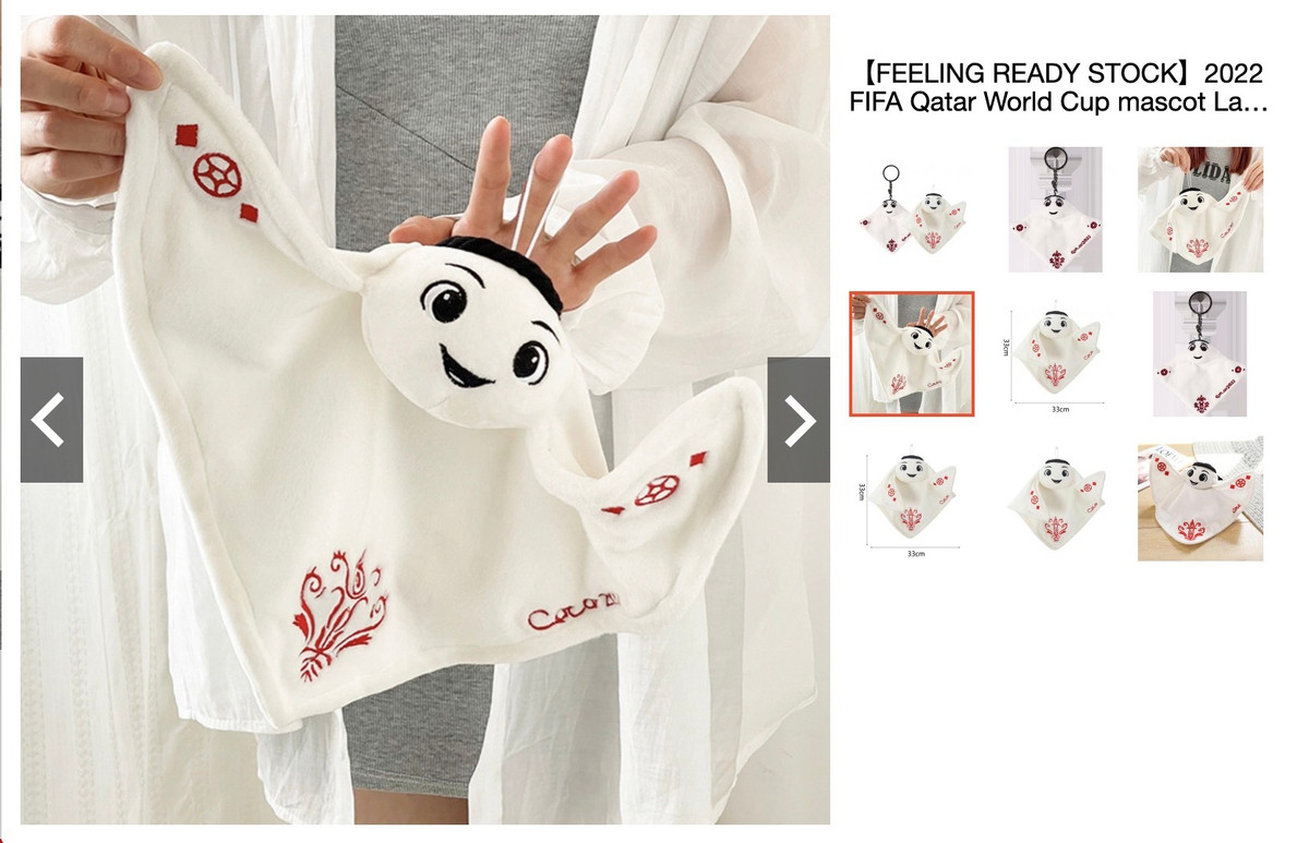 Sản phẩm búp bê nhồi bông linh vật World Cup 2022. (Ảnh chụp màn hình)