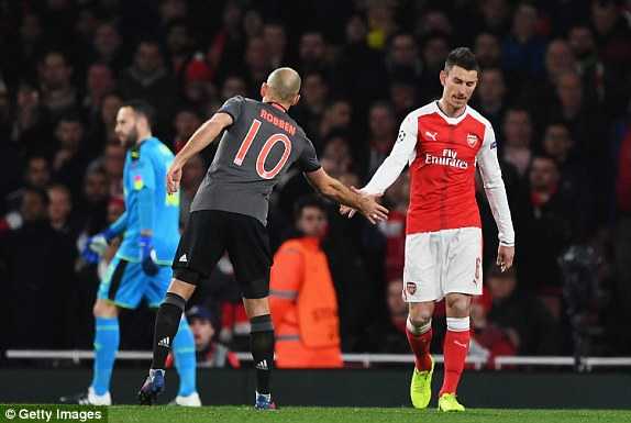 | 67' VÀO ..... 2-1 CHO BAYERN MUNICH Một tình huống lộn xộn trước khung thành của Arsenal sau pha phát bóng không tốt của thủ môn Ospina. Arjen Robben cướp bóng và ghi bàn thắng thứ hai cho đội khách. |