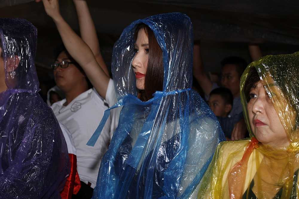 Mặc dù trời bắt đầu mưa nhưng vẫn không làm giảm đi sự cuồng nhiệt mà khán giả dành cho Việt Hương
