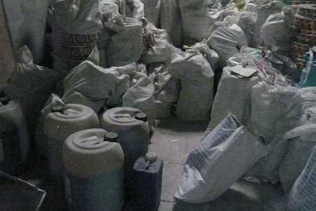 Đặc biệt là gian cuối cùng, là nơi trữ nguyên liệu (phẩm màu, hương liệu, đường hóa học), tất cả được đóng trong bao tải lớn và trong các can và được ghi tên rõ ràng cho từng loại, ở ngoài cửa được in dòng chữ lớn “không nhiệm vụ miễn vào”, phía sau xưởng là cánh đồng, bãi rác bốc mùi hôi thối.
