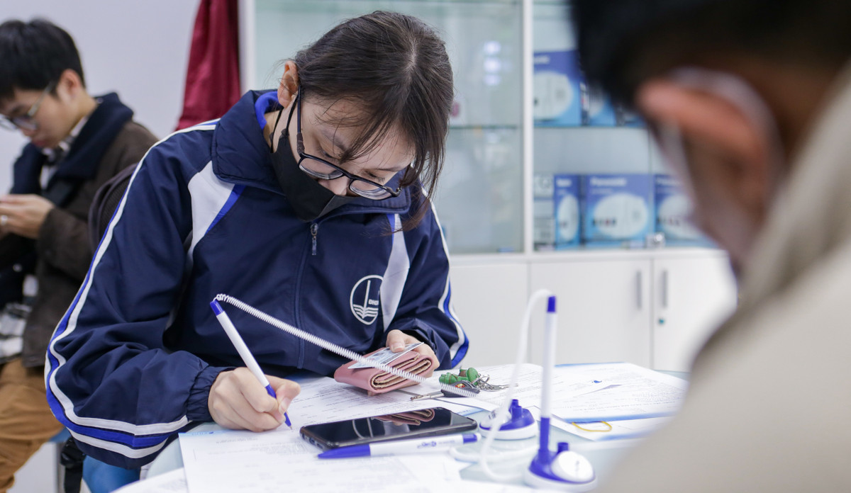 Bạn Nguyễn Hương Hoài (19 tuổi, sinh viên trường Đại học Khoa học Xã Hội và Nhân văn) cũng phải chờ hơn 1 giờ mới có thể chuẩn hóa thông tin SIM đang dùng. “Tranh thủ vừa học xong mình cùng bạn đến để chuẩn hóa SIM. Khi đến chúng mình được đưa một tờ khai để điền thông tin, sau đó chờ đến lượt. Đối với SIM không chính chủ, chúng mình cần chụp hình ảnh, thông tin CCCD và viết bản cam kết nếu chủ sở hữu SIM này muốn lấy lại SIM sẽ phải trả lại số.”