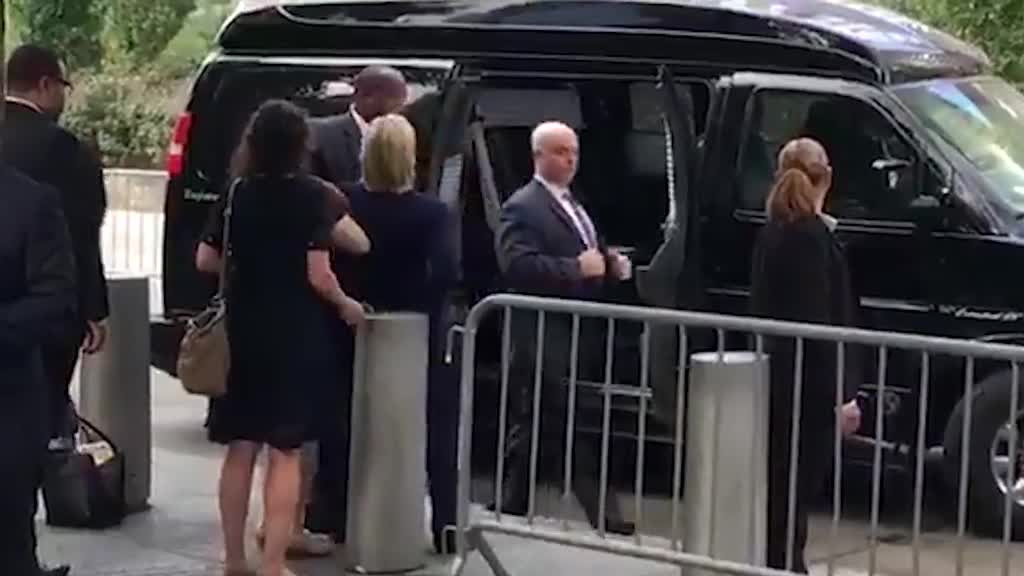 Đoạn clip cho thấy bà Hillary Clinton khuỵu gối, bước đi loạng choạng trước khi các trợ lý vội vàng đến dìu bà vào ôtô để rời khỏi lễ tưởng niệm vụ khủng bố 11/9 ở New York.