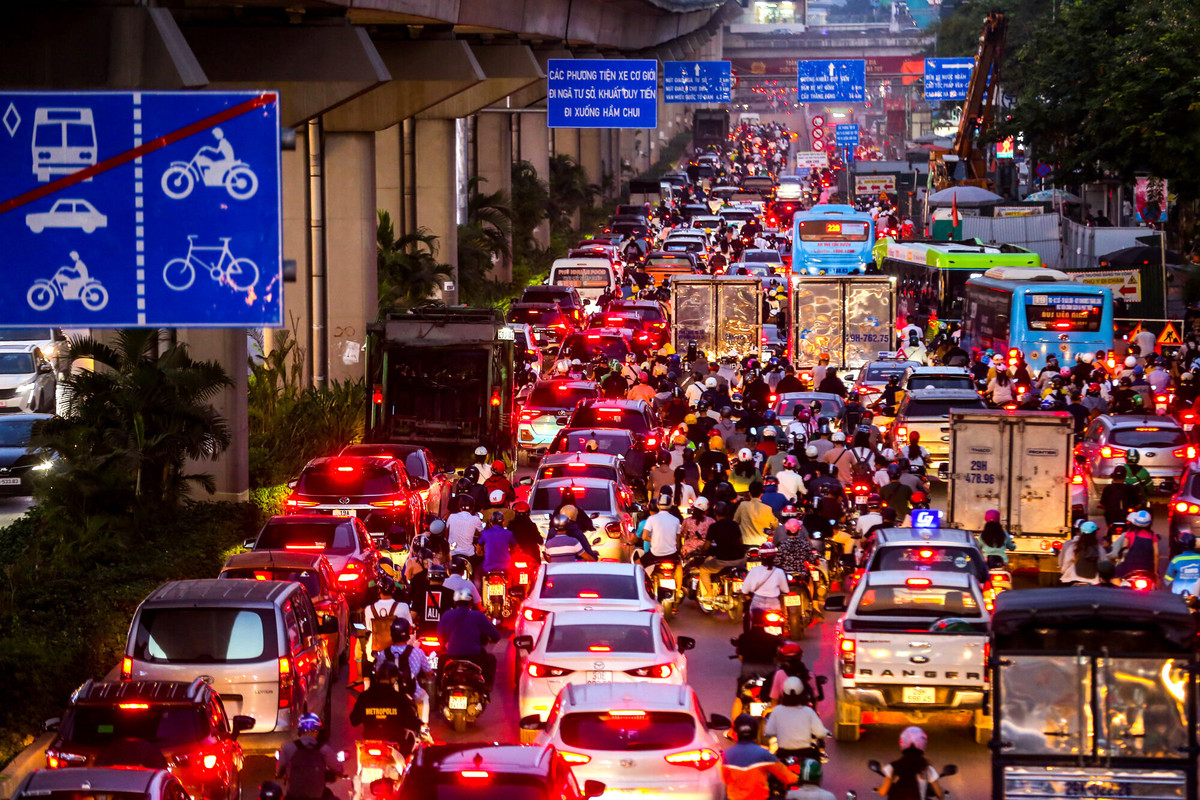 Khoảng 17h30, các phương tiện đổ dồn về đường Nguyễn Trãi hướng đi Ngã Tư Sở khiến các tài xế nhích từng chút một để trở về nhà.