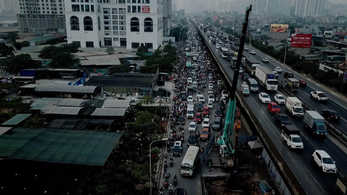 Nhiều đoạn trên tuyến đường Nguyễn Xiển (Hà Nội) bị rào tôn chiếm gần hết lòng đường khiến giao thông ùn tắc kéo dài cả ngày lẫn đêm.