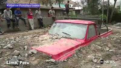 Mưa lớn dẫn đến lở đất dữ dội, chôn vùi nhiều nhà cửa và ôtô ở thủ đô Lima, Peru.