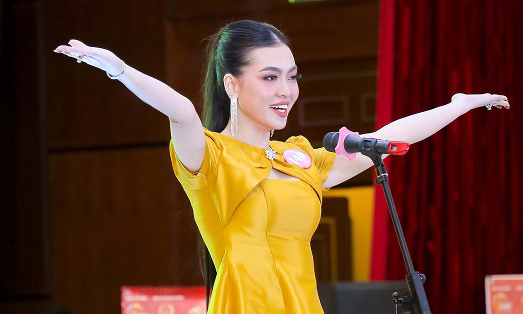 Bản lĩnh, tự tin trình diễn trang phục áo dài.