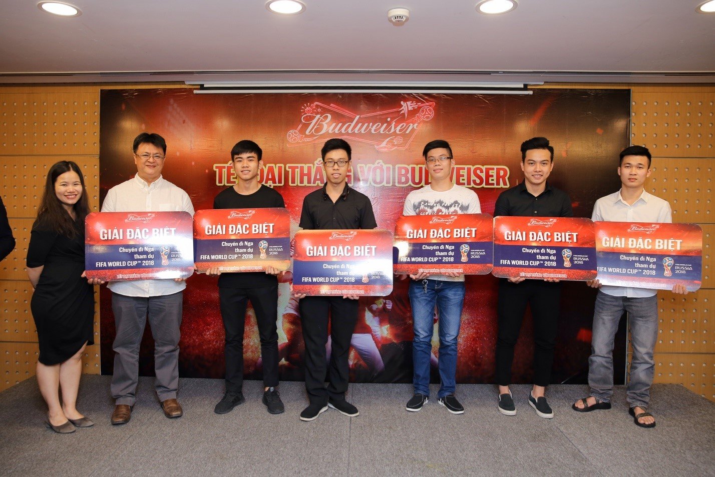 6 người may mắn đầu tiên giành được vé đến Nga xem World Cup 2018 trong buổi trao giải cùng đại diện nhãn hàng