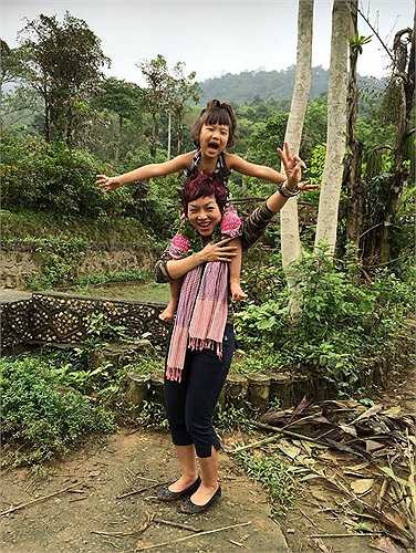 Thái Thùy Linh nô đùa bên cô công chúa bé nhỏ.