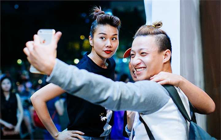 Đạo diễn Dũng 'khùng' cũng có mặt cùng cô, và chính Thanh Hằng là người dưa đón Nguyễn Quang Dũng đến xem phim, cả 2 cùng diện áo đôi. Cặp đôi này vẫn luôn dành cho nhau những tình cảm đặc biệt và những lời khen có cánh