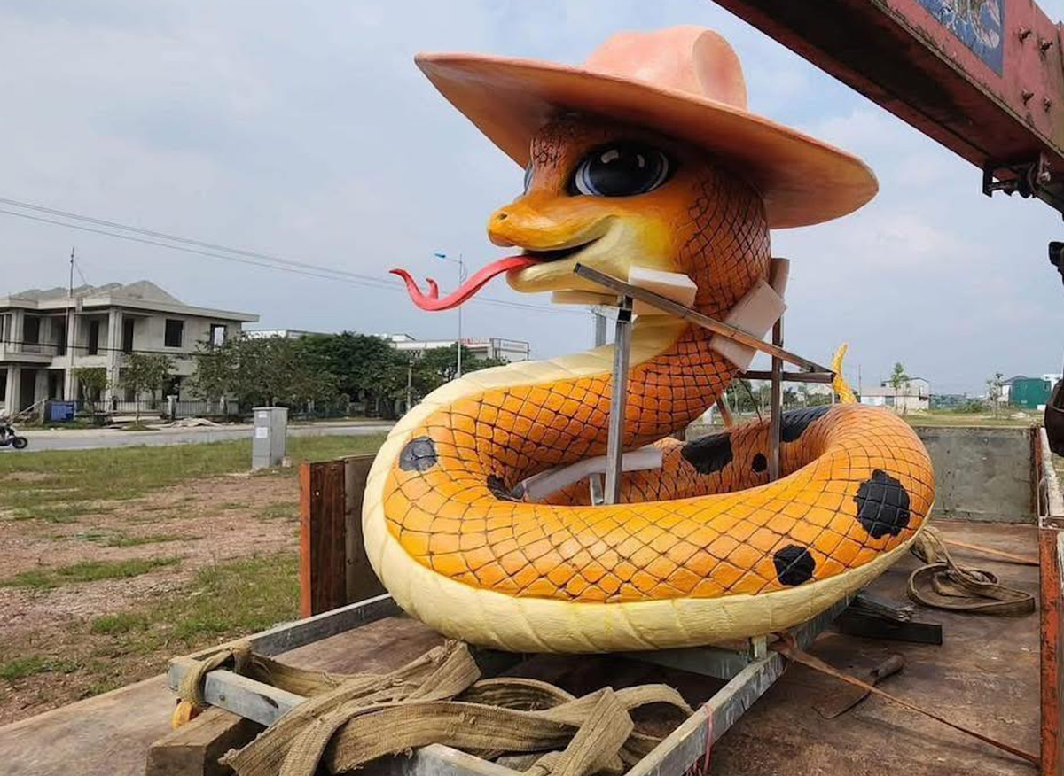 Từ sáng 7/1, mạng xã hội lan truyền hình ảnh mô hình linh vật rắn do nghệ nhân Đinh Văn Tâm (sinh năm 1991, làm nghề điêu khắc ở thôn An Dạ, xã Triệu Độ, huyện Triệu Phong) làm ra. Linh vật rắn này được đánh giá là đẹp và có vẻ nữ tính với màu cam đất, đôi mắt long lanh, được chế tác đội chiếc mũ điệu đà.