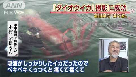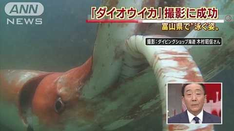 Đêm Giáng sinh vừa qua, kênh truyền hình ANN của Nhật Bản đã phát sóng hình ảnh về con mực khổng lồ có tên khoa học là Architeuthis. Con mực này dài 4m xuất hiện ở vịnh Toyama (Nhật bản). Loài mực này đạt đến kích thước khổng lồ nặng hơn 1 tấn, dài 13m.