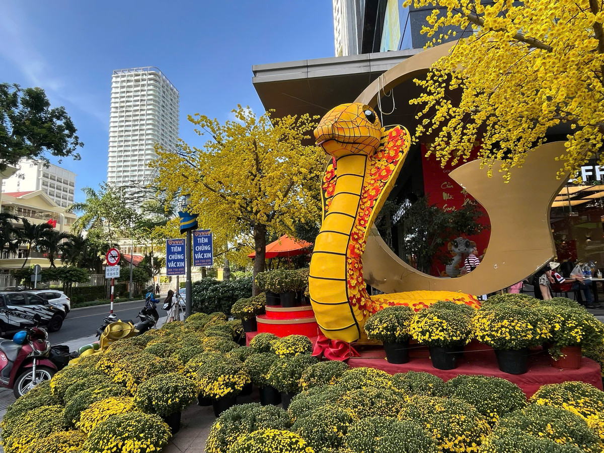 Ngày 10/1, tại một tòa nhà ở phường Lộc Thọ (TP Nha Trang), các công nhân đang tất bật hoàn thành 4 linh vật rắn (giới trẻ còn gọi là "bé Na") của năm Ất Tỵ 2025.