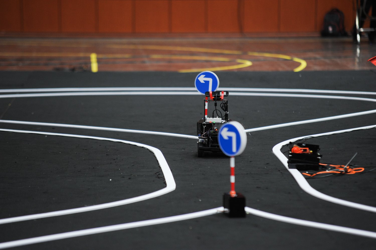 Đặc biệt, các biển rẽ trái, rẽ phải sẽ tự động thay đổi ngẫu nhiên qua từng lượt chạy để đảm bảo chính xác khả năng nhận biết biển báo của từng đội.