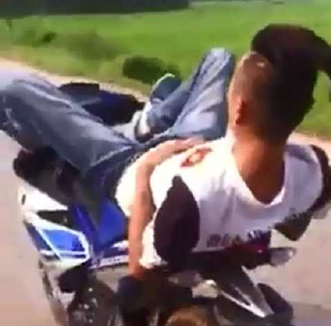 Trước đó, video ghi lại cảnh nam thanh niên điều khiển xe máy bằng chân được chia sẻ trên các trang mạng xã hội khiến người xem thót tim. Hình ảnh được ghi lại tại huyện Phú Bình, tỉnh Thái Nguyên.