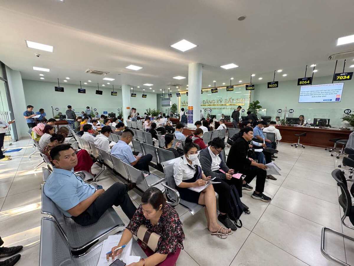 Tại TP Thủ Đức, Văn phòng đăng ký đất đai sáng 6/8 cũng trong cảnh rất đông người đi hoàn tất các thủ tục mua bán, chuyển nhượng. Theo phân quyền, Văn phòng đăng ký đất đai Thủ Đức giải quyết các trường hợp hồ sơ đã chứng nhận như mua bán, sang nhượng, thế chấp… còn hồ sơ chuyển mục đích sử dụng đất sẽ thực hiện tại Trung tâm Hành chính công.