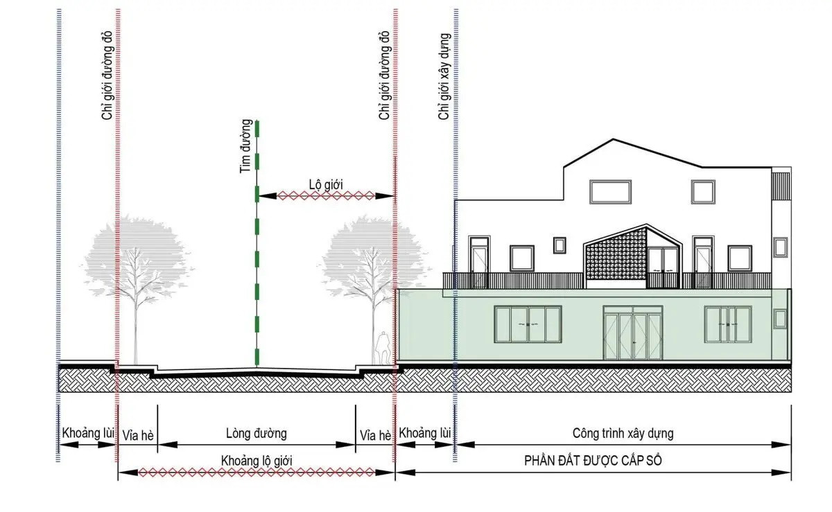 Theo báo Lao Động, mốc lộ giới đất gồm: lộ giới, khoảng lùi và chỉ giới xây dựng. Trong đó, chỉ giới xây dựng là đường giới hạn cho phép người dân xây dựng nhà, công trình kiên cố. Chỉ giới xây dựng có thể trùng hoặc lùi vào so với chỉ giới đường đỏ (lộ giới) tùy theo yêu cầu của quy hoạch. Còn khoảng lùi là khoảng cách giữa chỉ giới đường đỏ và chỉ giới xây dựng.