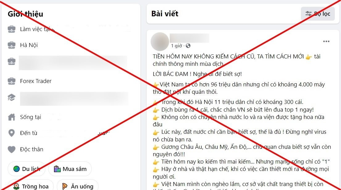Đầu năm nay, Trung tâm Xử lý tin giả Việt Nam (VAFC) khuyến cáo về đoạn tin giả có nội dung: “Nếu ai có ý định đi du lịch khi vé đang rẻ, hay về quê ăn Tết với gia đình thì hãy suy nghĩ lại bằng sự thấu đáo của mình. Không du lịch đợt này ta đi đợt khác. Không về quê lúc này thì ta về lúc khác nhưng dịch không dập lúc này thì không còn lúc khác đâu...".