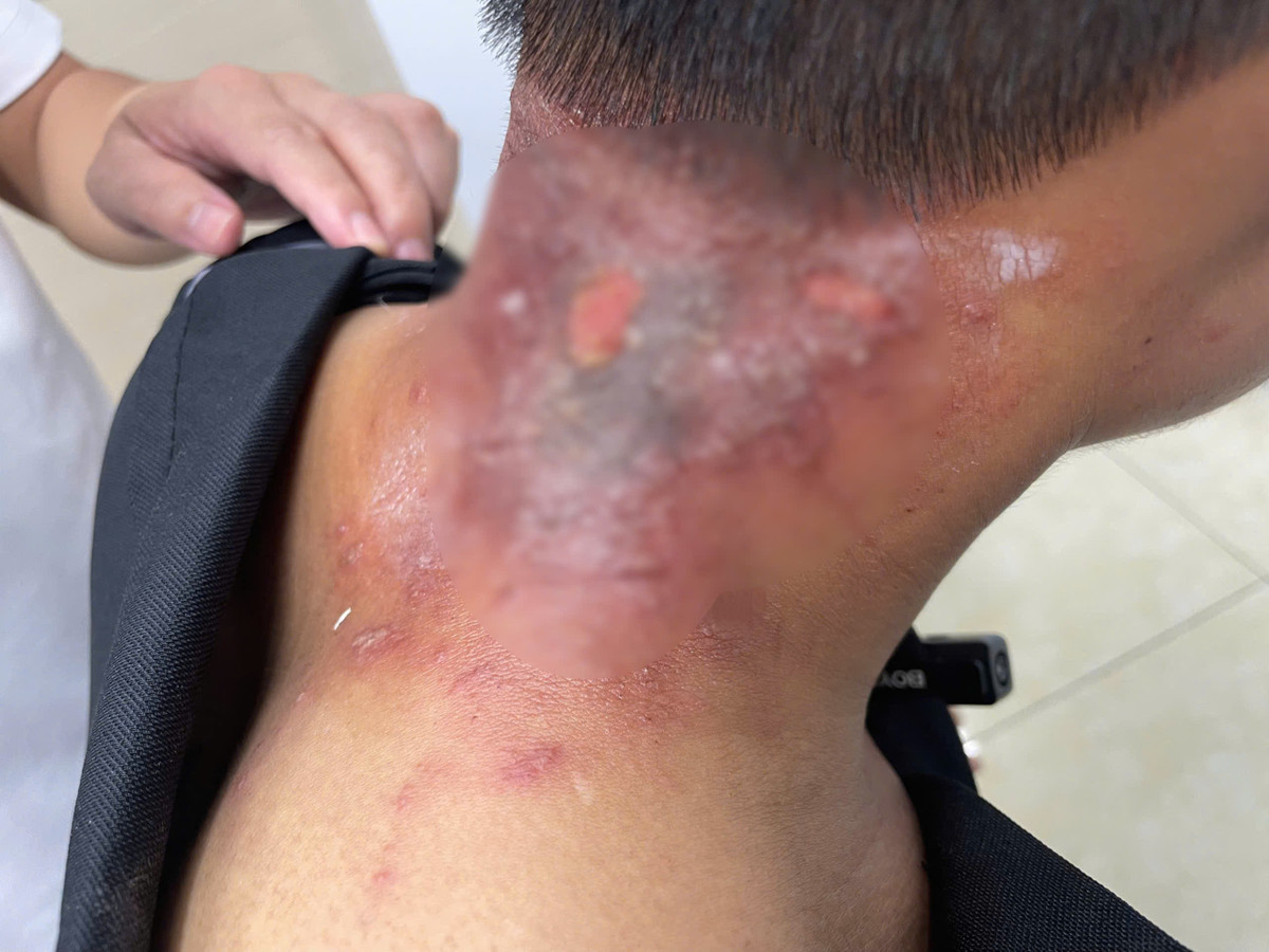 Nguyễn Văn Hùng, 25 tuổi ở Hà Nội, tìm đến bác sĩ da liễu thăm khám sau một tuần bị ngứa, lở loét. Đợt mưa bão vừa qua nhà Hùng bị ngập, nước dâng cao 1/3 nhà, anh phải ngâm mình trong nước nhiều ngày để vớt tài sản, đi mua lương thực.