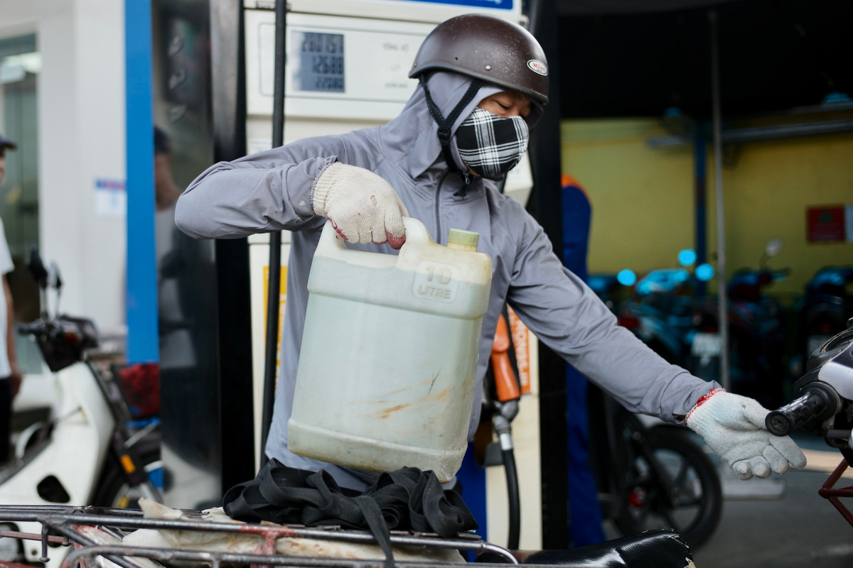 Anh T. không chỉ đổ đầy bình xăng chiếc xe Honda Dream II của mình mà còn mua tích trữ thêm 1 can 10 lít xăng. “Mua sẵn về, xe cứ hết xăng thì đổ trực tiếp vào dùng, con hơn là cứ hết thì lại ra cây xăng xếp hàng, nhất là lúc bão sắp về. Tất nhiên tôi cũng phải rất cẩn thận để đảm bảo an toàn".
