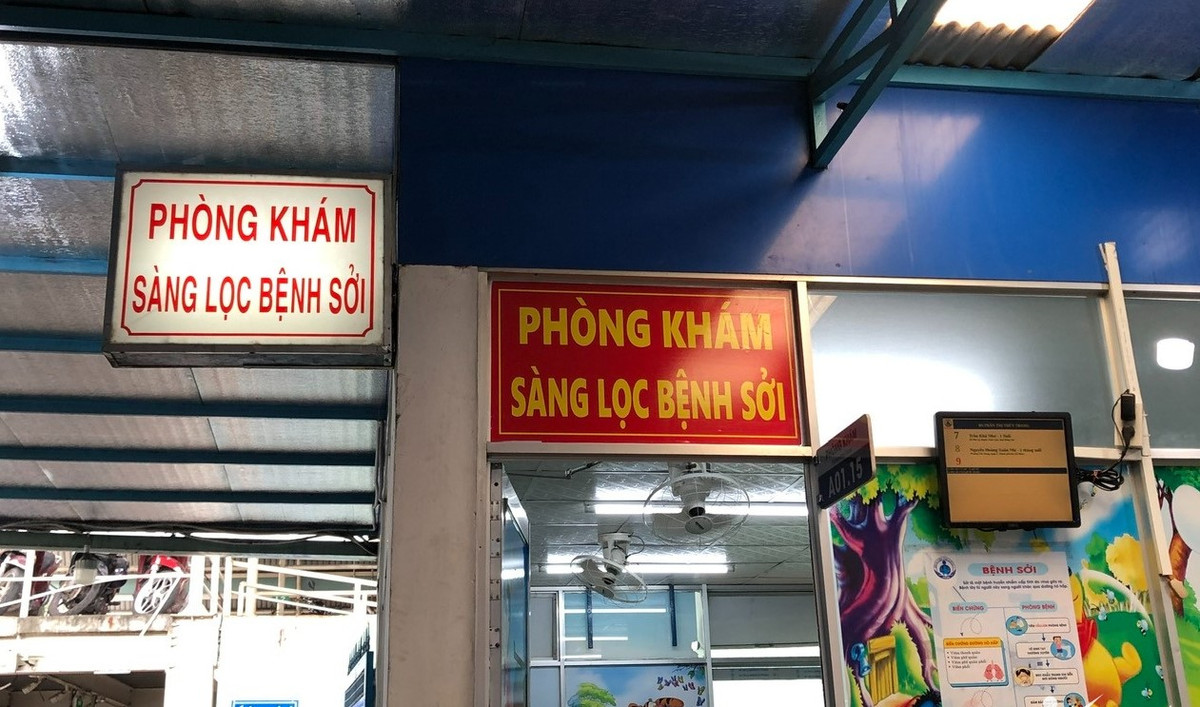 Khu vực sàng lọc bệnh nhân sởi tại Bệnh viện Nhi đồng 1. (Ảnh: B.D)