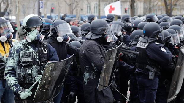 Cảnh sát chống bạo động Pháp khi đó phải sử dụng tới vòi rồng và hơi cay để trấn áp.