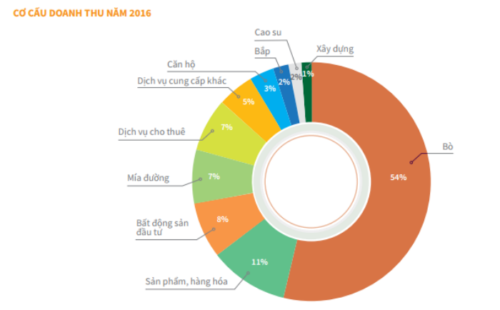Ngành chăn nuôi bò đạt 3.465 tỷ đồng doanh thu, chiếm tỷ trọng 54% tổng doanh thu của Tập đoàn, vượt 3% so với kế hoạch. Đây là ngành kinh doanh đóng góp chính vào nguồn doanh thu và lợi nhuận của Tập đoàn.