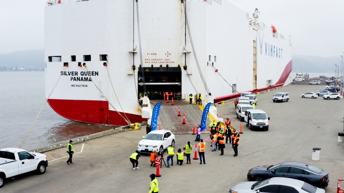 Con tàu chở 999 chiếc ô tô điện VinFast cập cảng Benicia, California.