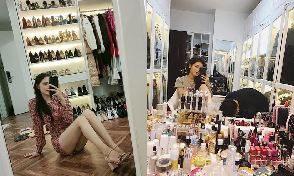 Tủ giày của Hương Giang đa dạng từ dép, giày sneaker, giày cao gót và bốt. Tổng toàn bộ số tiền mà người đẹp bỏ ra cho những món đồ xa xỉ này có lẽ phải bằng căn nhà hoặc chiếc xe hơi.