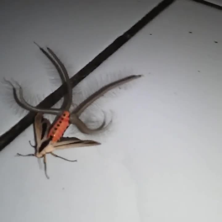 Được biết đây là Creatonotos Gangis, một loài bướm đêm có bộ phận sinh dục tỏa mùi hương đặc biệt nhằm thu hút bạn tình.